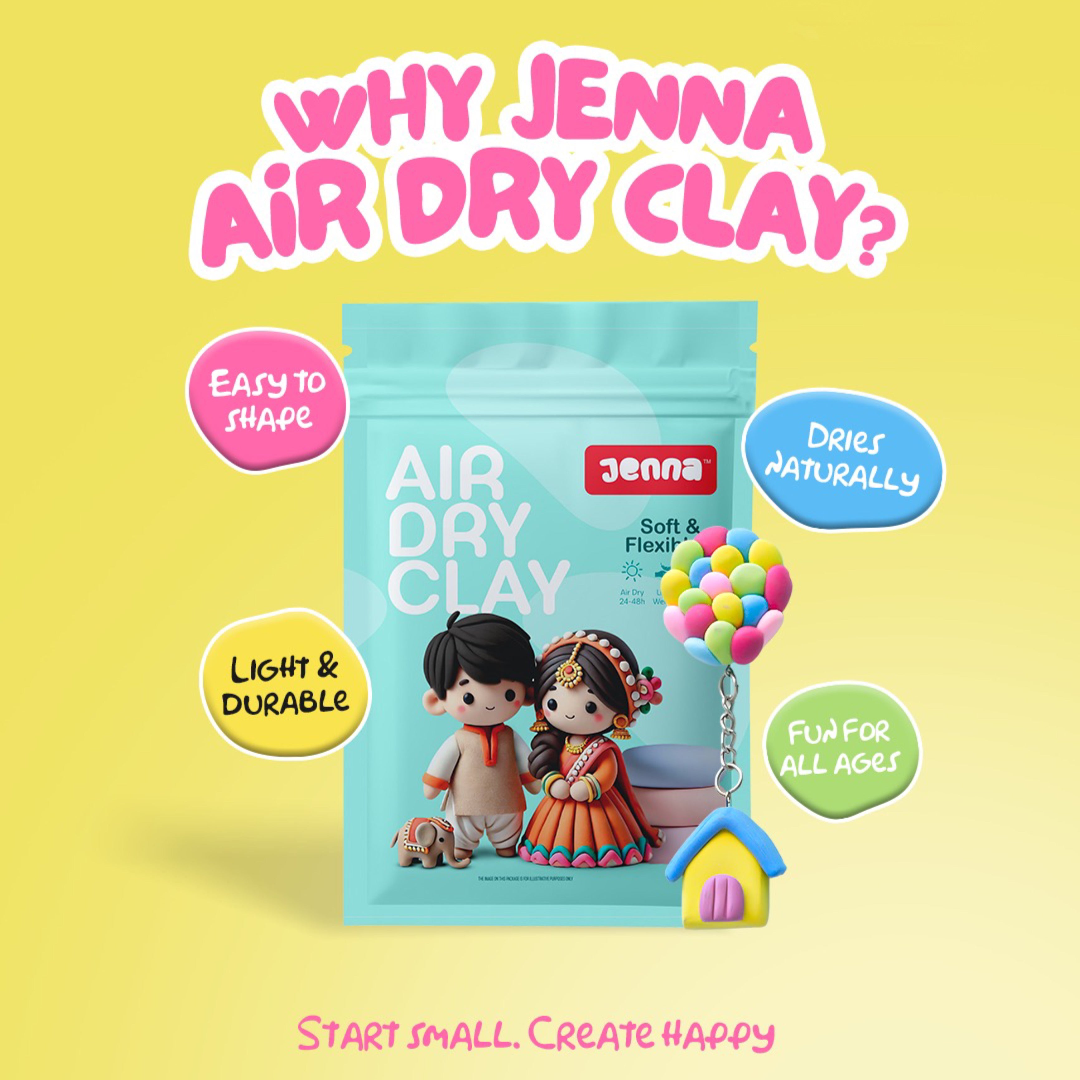 ✔️Jenna Air Dry Porcelain Clay dries in air, no need to bake/ microwave.